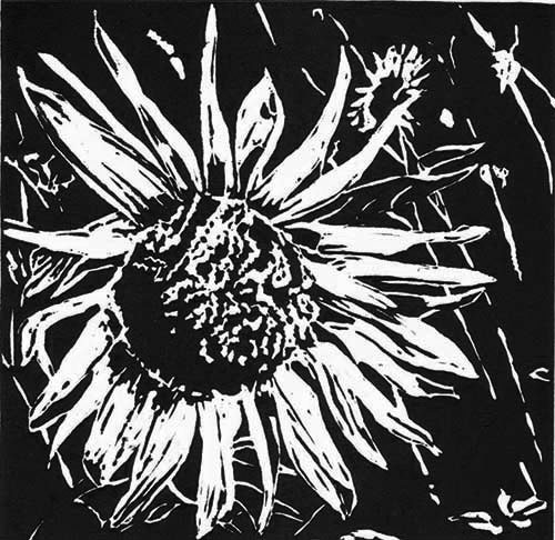 Sunflower II Linocut on Fabraio Paper Plate size 20cm x20cm, paper size 34cm x 34cm